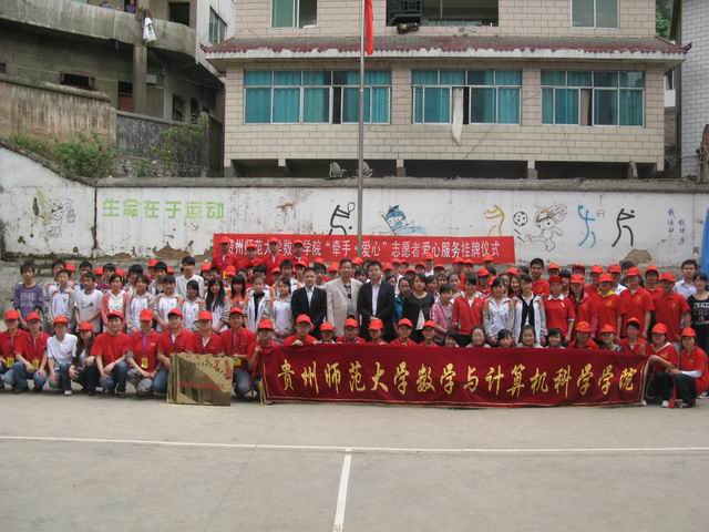 为了提高和培养公司员工的教学技能和社会实践能力,向农民工子弟奉献一份爱心,,进一步展现当代老员工青年志愿者良好的精神风貌,2011年5月5日下午,数学与计算机科学公司团总支、青年志愿者分会在贵阳市筑东公司隆重举行“牵手•爱心”关爱农民工子女春晖义务支教志愿者服务基地挂牌仪式。公司党委副书记冯海涛、公司团总支书记夏天、筑东公司林董事长,公司100多名志愿者、筑东公司全体师生近1000余人参加了此次活动。