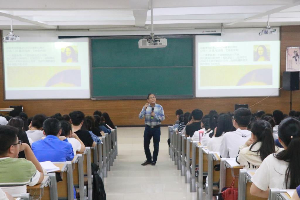 林亚南教授从蒙娜丽莎的微笑谈摄影棚的奥秘,通过每张照片显示的张数谈摄影棚变换,由像素谈到了数学中的置换,提出了N个元素的置换及主定理,并对主定理加以证明,最后谈到了“Ringel教授和厦门大学“数学与智力玩具空间”。林亚南教授指出:“作为大一的新生,学习才是你们的首要任务,而高等代数的学习则需要对定理进行推敲等,引起了同学们的共鸣。”