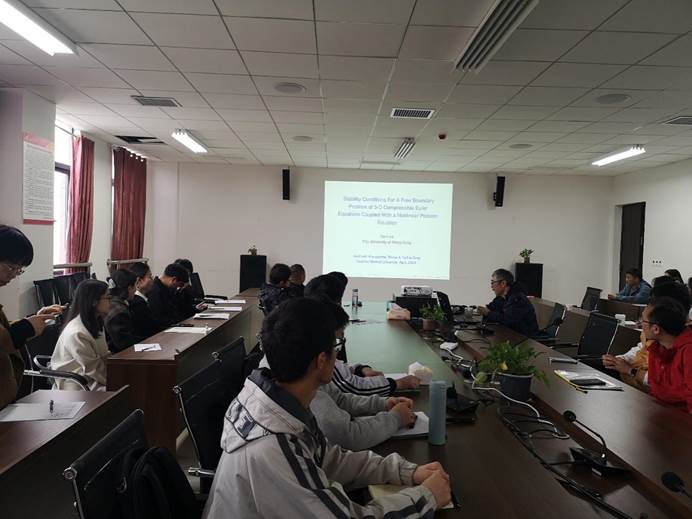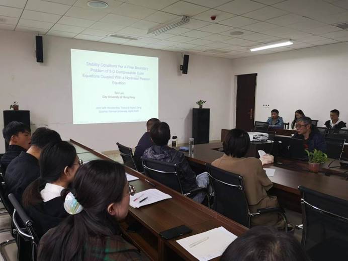 2023年4月7日下午,应mjm世界杯官网邀请,香港城市大学数学系著名教授罗涛在公司报告厅为mjm世界杯官网师生作了题为“Stability conditions for a free boundary problem of compressible Euler equations coupled with a nonlinear Poisson equation”的学术讲座。
