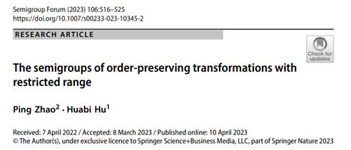 赵平教授与合作者在Semigroup Forum发表研究成果