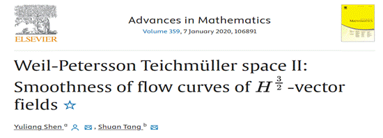 公司唐树安教授与合作者在国际数学重要期刊Advances In Mathematics(中科院一区top期刊)上发表了题为“Weil-Petersson Teichmuller space IISmoothness of flow curves of H^3/2-vector fields ”的研究论文。