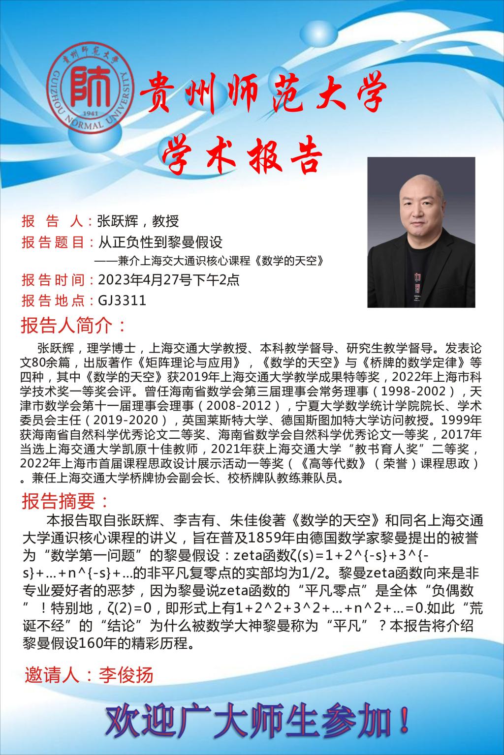 学术报告:从正负性到黎曼假设