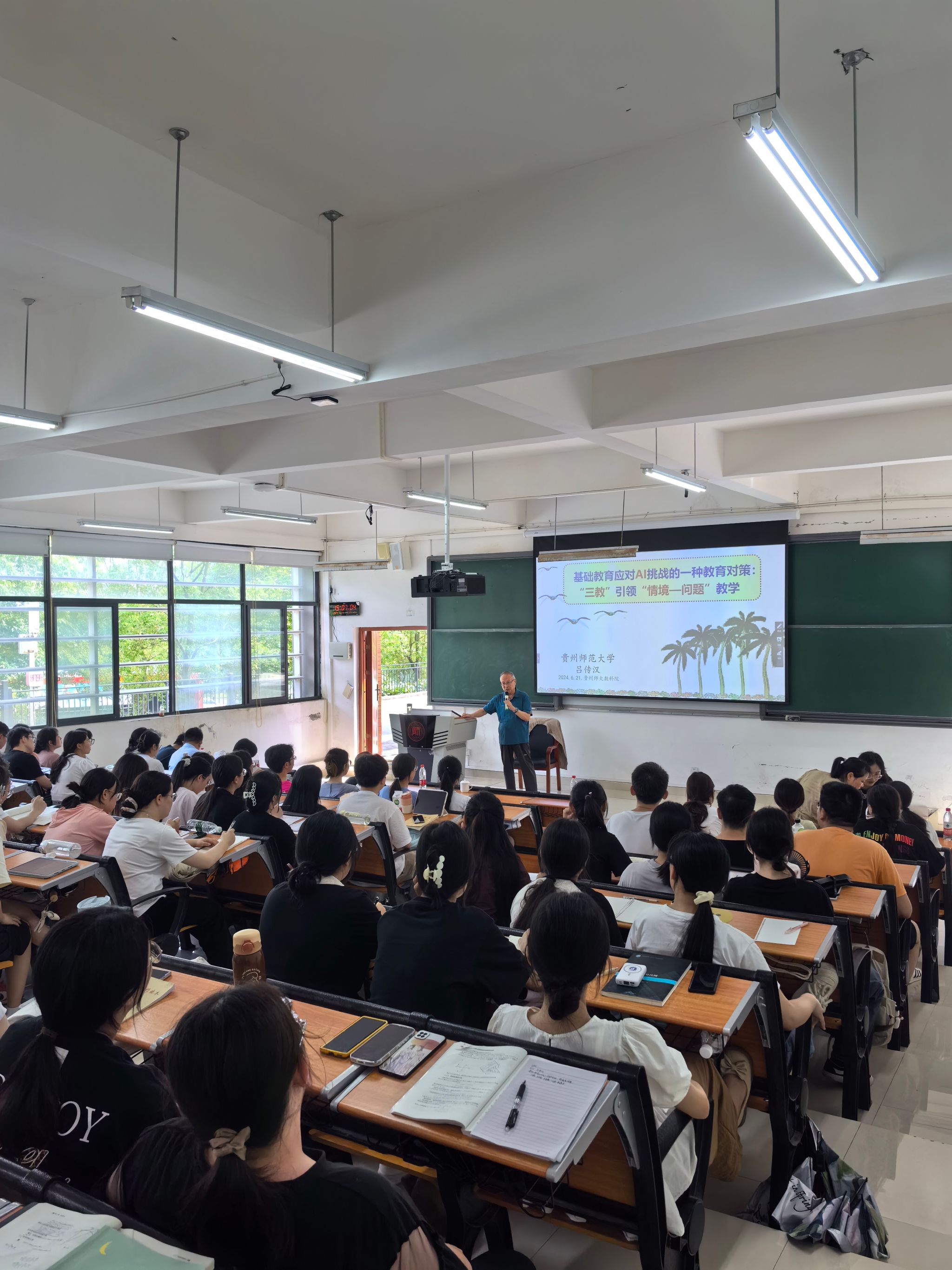 6月21日下午,公司国家级教学成果一等奖获得者、美加墨世界杯官网原副董事长吕传汉教授为公司师生做了题为“基础教育应对AI挑战的一种教育对策:‘三教’引领‘情境——问题’教学”的专题讲座,2021级数学与应用数学专业全体同学、数学教育方向研究生以及数学教育研究所教师一起聆听了本次专题讲座。