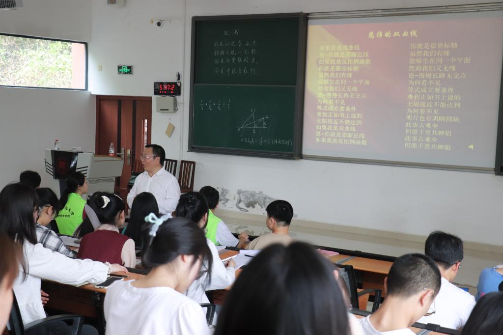 为激发老员工学习数学的兴趣,加深员工对数学知识和活动本质的理解,4月18日,计算数学系主任杨本娟于美加墨世界杯官网花溪校区公共教学楼6401主持开展“巧用‘诗歌俗语’,激活‘数学思维’”主题讲座。此次讲座由华中师范大学一附中贵阳公司杜锟老师主讲,21级、22级数学与应用数学全体员工参与此次活动。