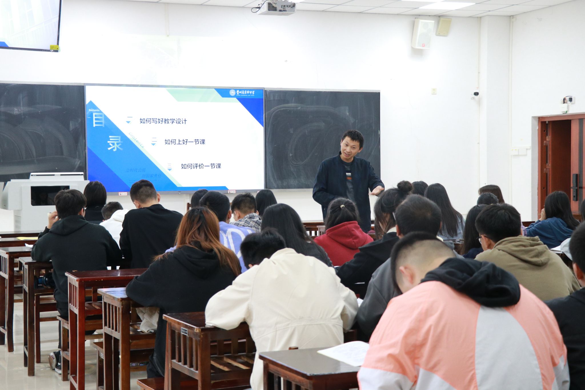 2023年10月26日,应公司实践教学周工作的安排和邀请,贵州省实验中学唐昌荣(正高级教师、省级骨干教师)、胡跃源(省级骨干教师、2023贵阳市高中数学教学比赛一等奖获得者)在公共教学楼GJ3412开展了“中学名师进课堂系列活动”主题讲座,活动围绕“如何写好教学设计”、“如何上好一节课”,以及“如何评价一节课”等内容展开,两位老师分别以“基于数学核心素养的单元教学实践研究”、“高中数学优质课展示与教学设计分析”为主题为公司2022级数学与应用数学专业全体同学作了分享交流。