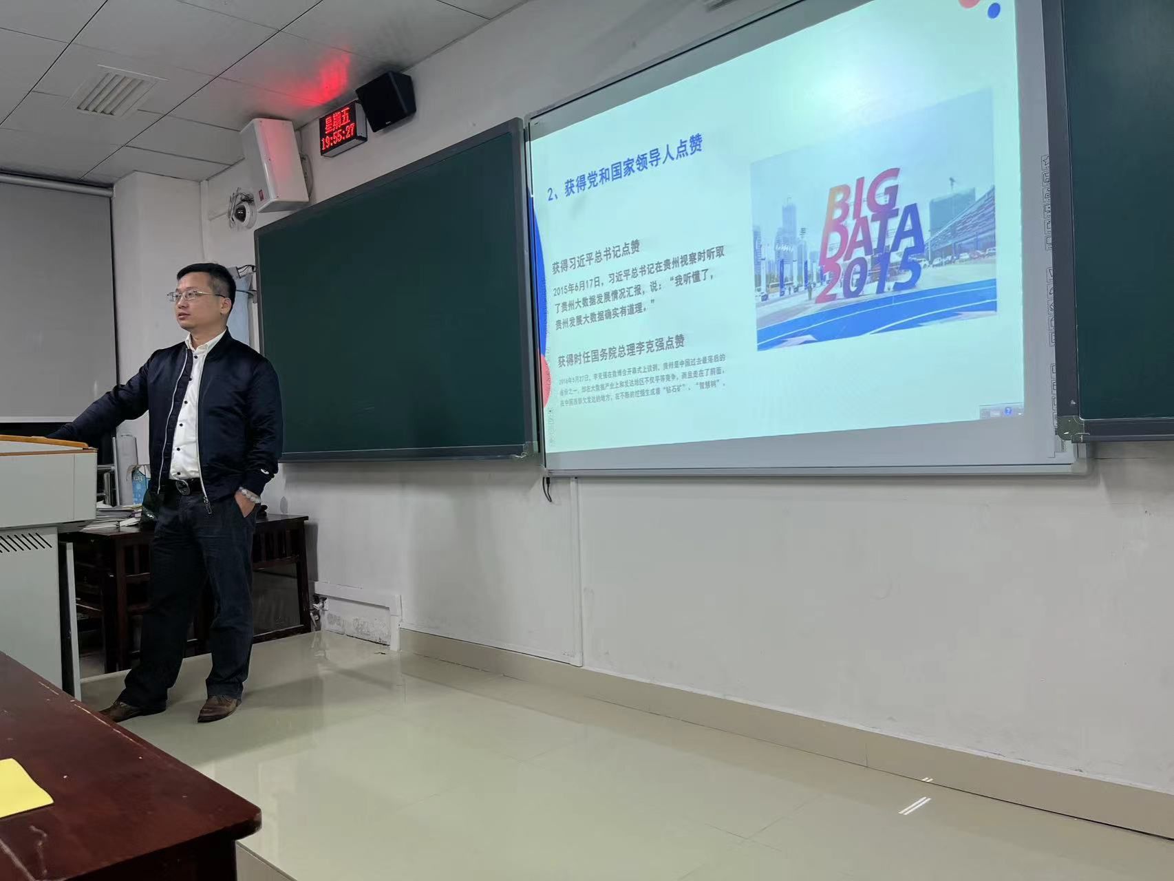 为了让员工们更好的了解贵州大数据的发展历程,了解自身专业未来发展优势,增强员工们对专业所学知识的兴趣,10月27日,贵阳高新区大数据发展办公室程灵琨主任于mjm世界杯官网S205教室开展了"从大数据综合试验区到数字经济发展新区"的专业讲座,2022级应用统计学与2022级信息与计算机科学专业全体同学参与此次活动。