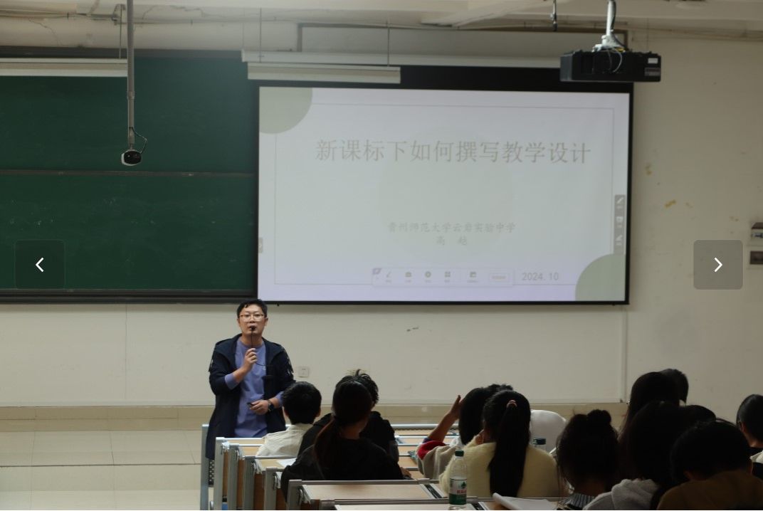 为增加员工的综合素养,提高员工的教学实践能力,10月30日,美加墨世界杯官网云岩实验中学数学高级教师高越于美加墨世界杯官网花溪东校区GJ6301教室开展了“中学名师进课堂系列活动——新课标下教学设计的撰写”主题讲座,2022级和2023级数学与应用数学专业全体员工参加了此次活动。