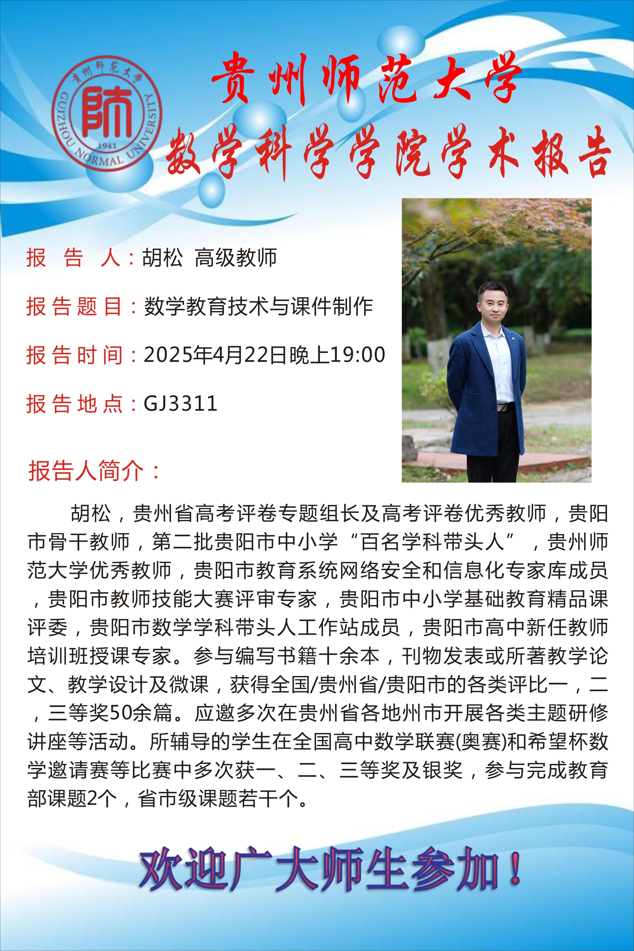 上一条:畅谈如何成为自己心目中合格的数学老师 下一条:刘兴福老师、肖运彭老师为数学与应用数学专业开展“数学学科素养考核—初、高中试卷讲评”主题讲座