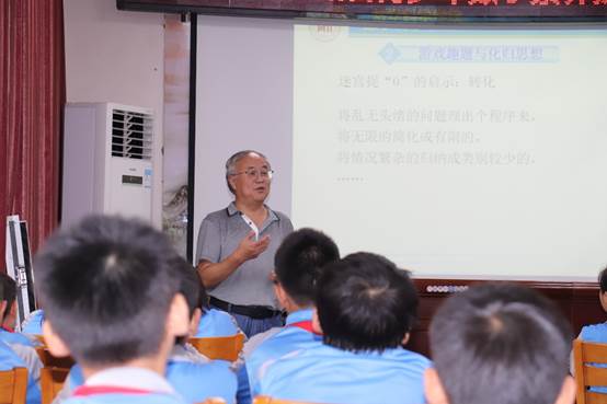 “将乱无头绪的问题理出程序来、将无限的简化成有限的、将情况繁杂的归纳成类别较少的……这是数学中常用的一种思想方法——化归思想方法。”9月22日,“2023年度贵州省基层科普行动计划项目——贵州省青少年数学素养提升活动”第七次活动在印江土家族苗族自治县第二完全小学举行。公司李俊扬教授以“趣味题与简捷解”为题,由一个小游戏引入化归思想,并强调化归思想的重要性。